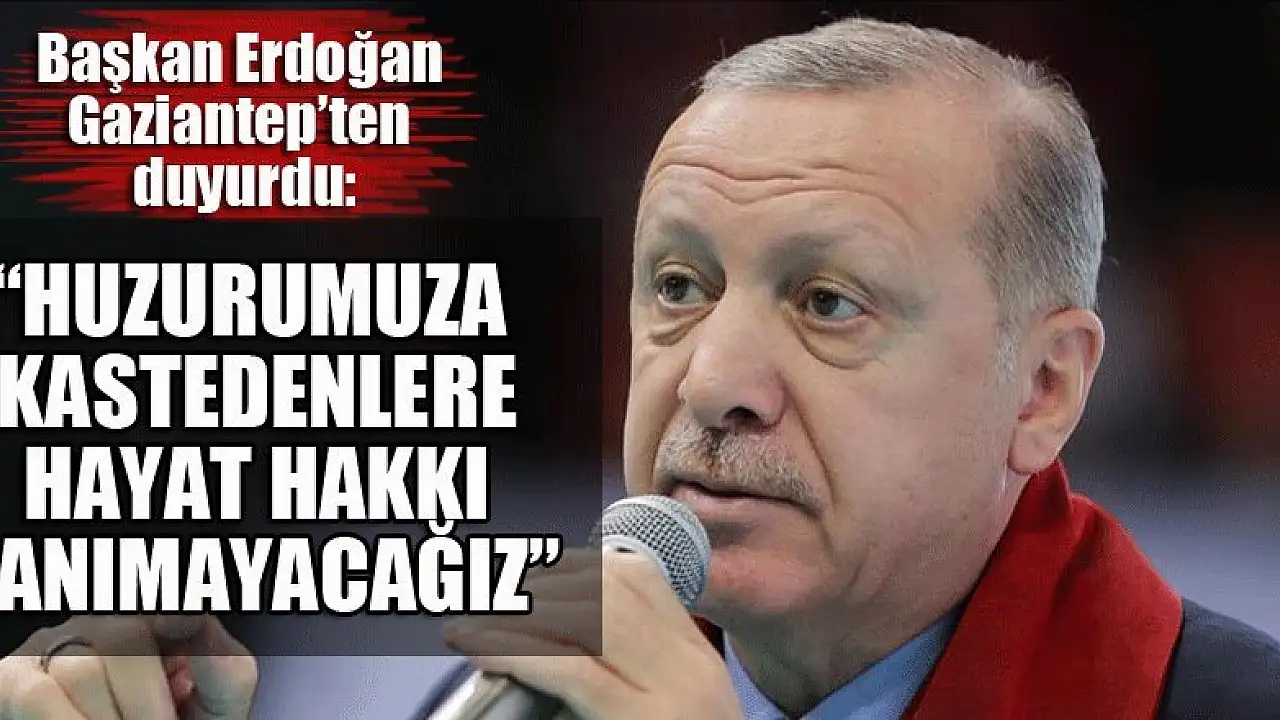 Cumhurbaşkanı Erdoğan, 'Bizim huzurumuza, refahımıza kastedenlere hayat hakkı tanımayacağız, içeride ve dışarıda.' dedi.