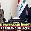 Irak Başbakanı İbadi, Irak Kürt Bölgesel Yönetimi'nin 25 Eylül'de yapmayı planladığı referandumla ilgili, 'Referandumun ertelenmesi değil, tamamen iptal edilmesi gerekir' dedi.