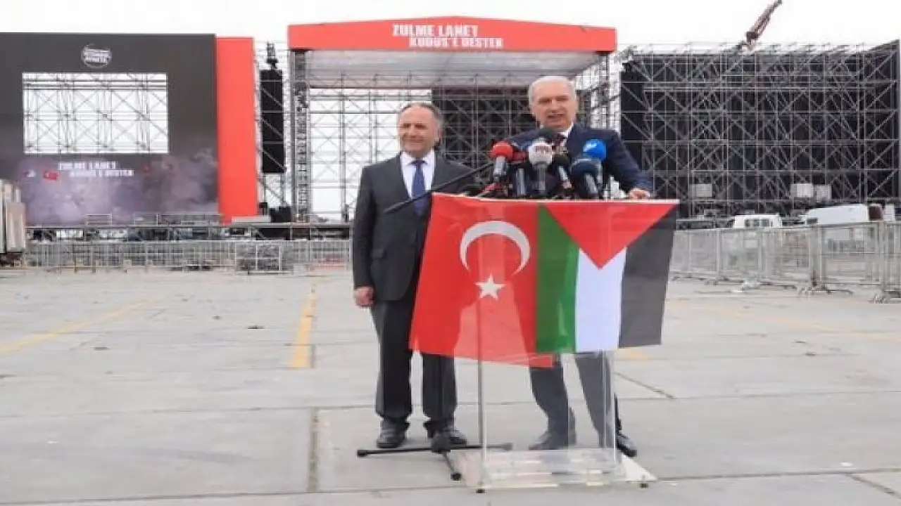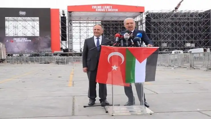 İsrail’in Filistin halkına yaptığı katliam sonrası Cumhurbaşkanı Recep Tayyip Erdoğan’ın çağrısıyla Yenikapı’da düzenlenecek “Filistin Halkına Destek Mitingi" öncesi hazırlıklar sürüyor. İstanbul Büyükşehir Belediye Başkanı Mevlüt Uysal ve Türkiye Gönüllü Teşekküller Vakfı Başkanı Hamza Akbulut mitingin yapılacağı alanda bir basın toplantısı düzenledi.