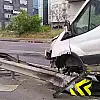 İBB'ye ait araç, bariyere ok gibi saplandı