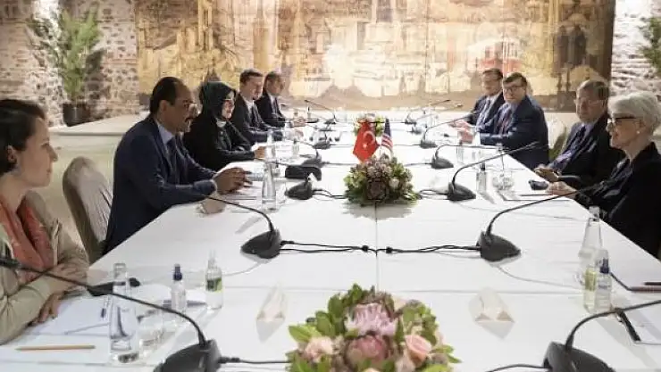 Cumhurbaşkanlığı Sözcüsü İbrahim Kalın ve ABD Dışişleri Bakan Yardımcısı Wendy Sherman arasındaki görüşme, Cumhurbaşkanlığı Dolmabahçe Ofisinde gerçekleşti.