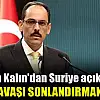 Cumhurbaşkanlığı sözcüsü İbrahim Kalın, Suriye'deki operasyonla ilgili açıklamada bulundu Kalın, 'Amaç Suriye'deki savaşı sonlandırmak olmalıdır. Kimyasal silah cevapsız bırakılmamalı' dedi.
