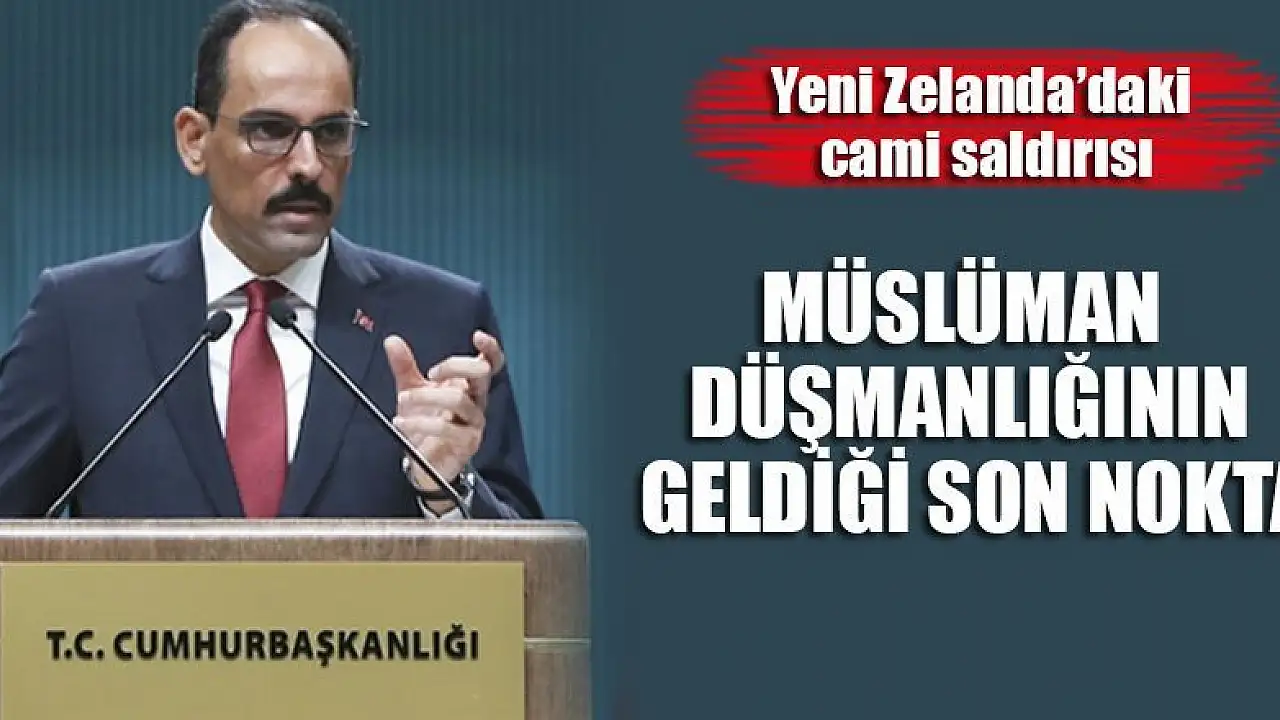 Cumhurbaşkanlığı Sözcüsü İbrahim Kalın, Yeni Zelanda'da iki camiye saldırılmasına dair, "İslam karşıtlığının ve müslüman düşmanlığının geldiği noktayı göstermektedir" dedi.