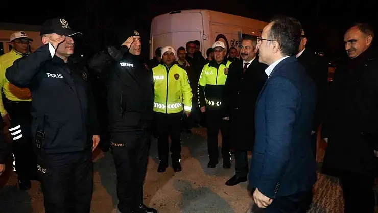 İçişleri Bakan Yardımcısı İsmail Çataklı, yılbaşı denetimlerinde Konya'da uygulama noktalarında görev yapan emniyet ve jandarma personeli ile bir araya geldi.