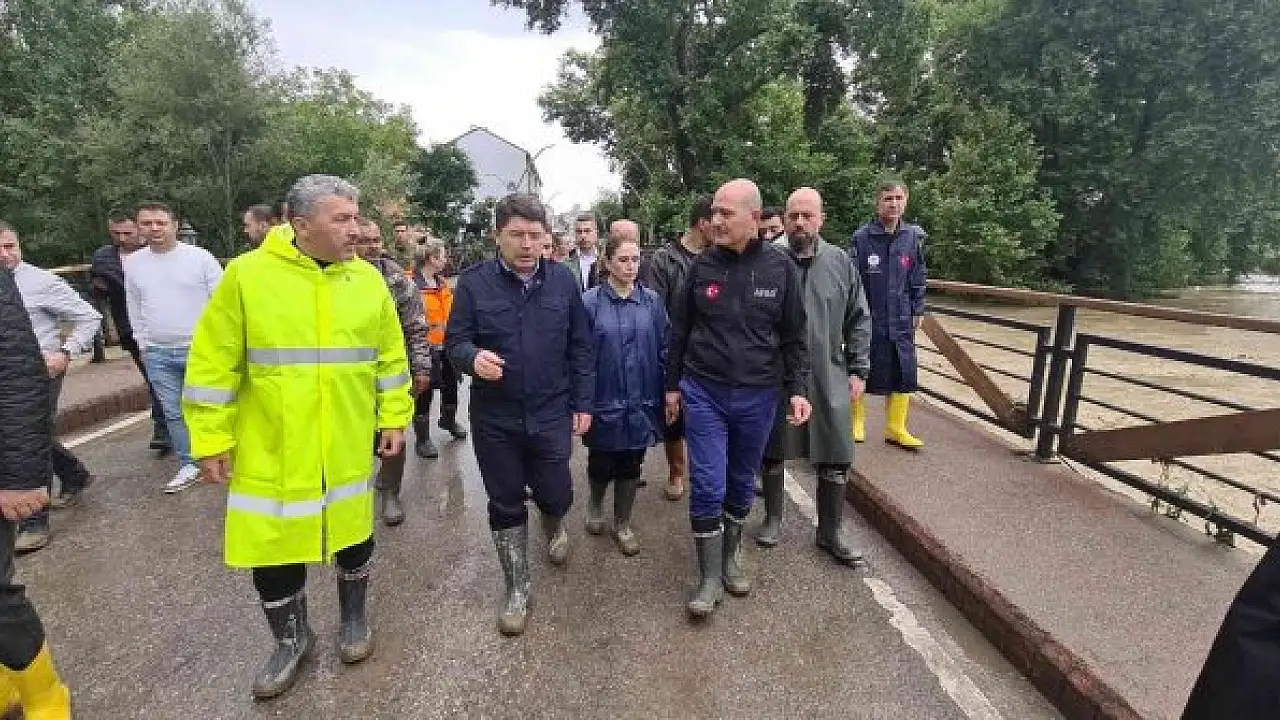 Bakan Soylu, Batı Karadeniz'i etkisi altına alan sel felaketi nedeniyle Bartın'da incelemelerde bulundu.