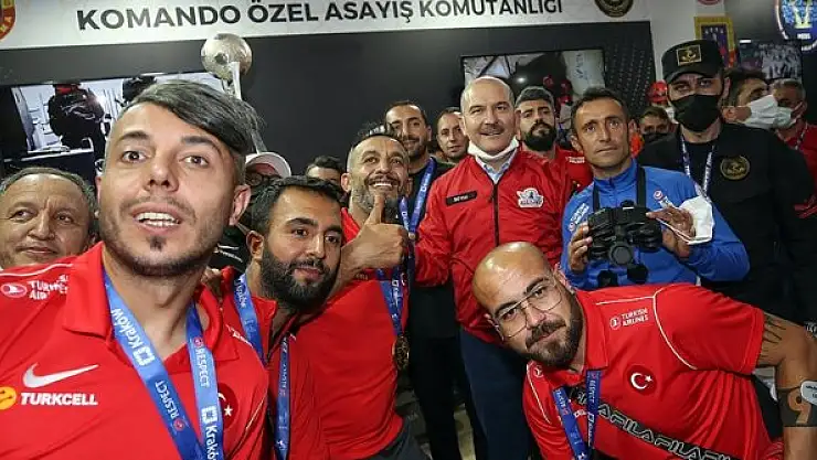 Bakan Soylu, bakanlığın standında Avrupa şampiyonu olan Ampute Milli Futbol Takımı'yla da fotoğraf çektirdi.