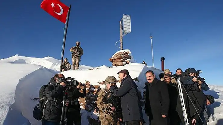 İçişleri Bakanı Süleyman Soylu, yeni yıla "merhaba" dediği Yüksekova ilçesindeki 2 bin 970 metre rakımlı Evliya Tepe Üs Bölgesi'nde nöbet kulübelerini gezerek, güvenlik güçlerine moral verdi.