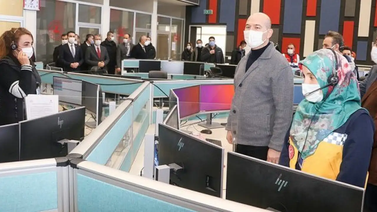 Bir süre çağrı merkezi personeliyle sohbet eden Soylu, telsiz aracılığıyla kentte görev yapan sağlık çalışanlarının yeni yılını kutladı.