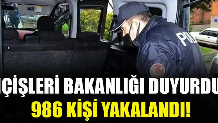 İçişleri Bakanlığı duyurdu: 986 kişi yakalandı!