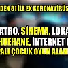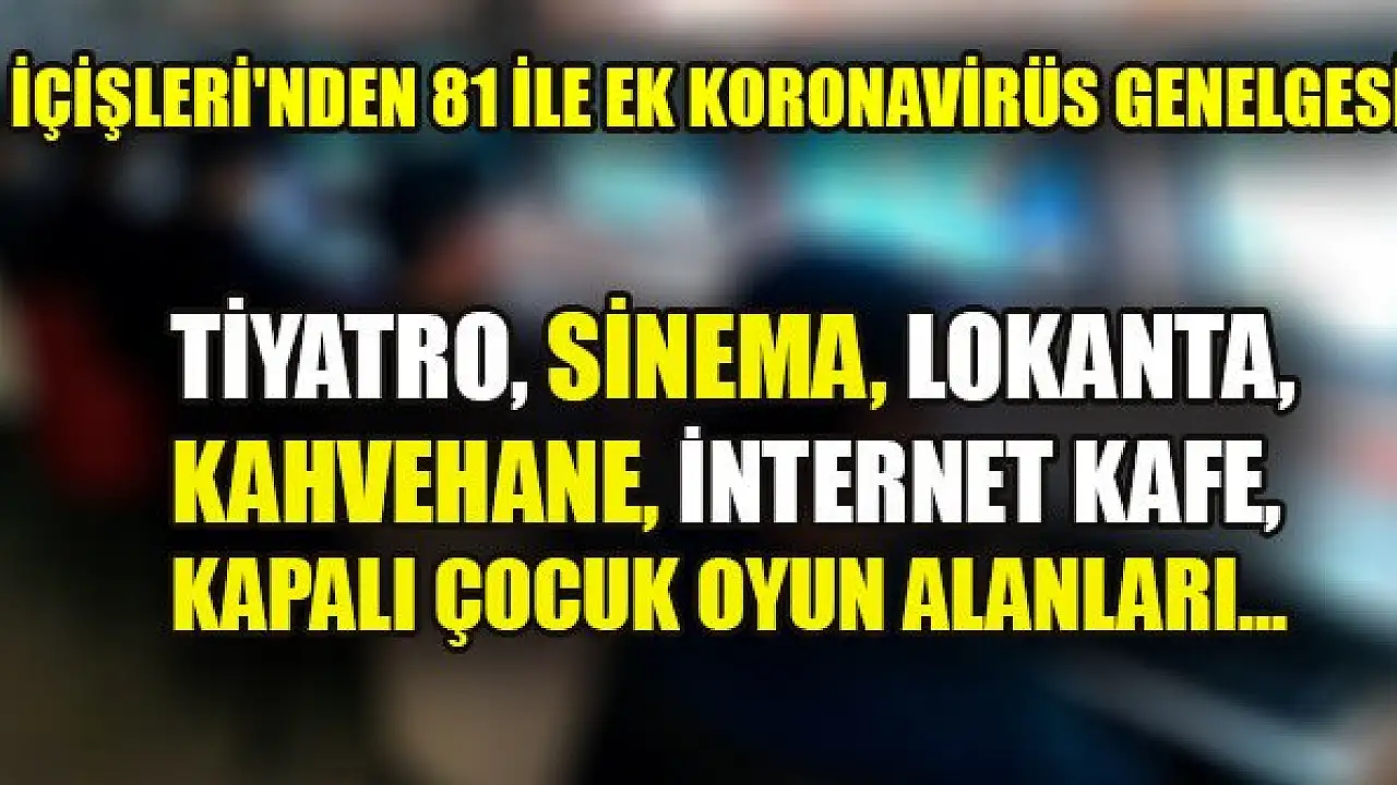 Genelgeyle, bu gece yarısından itibaren tiyatro, sinema, lokanta, kahvehane, internet kafe, kapalı çocuk oyun alanlarının faaliyetleri durdurulacak.