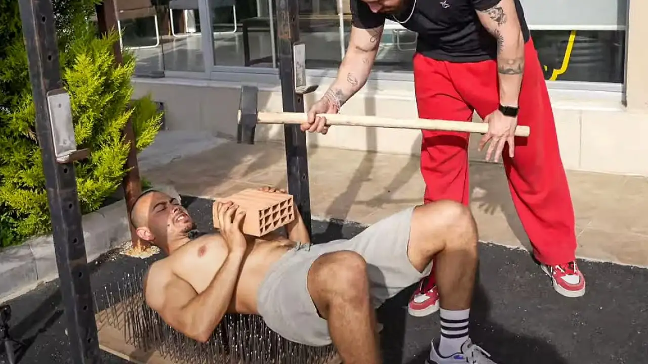 Antalya'da yaşayan Ozan Kuşçu (24), arkadaşlarıyla girdiği iddia üzerine yaklaşık 700 çivinin bulunduğu tahtanın üzerine yatıp, 100 kilogramlık ağırlık kaldırdı. İddiayı kazanan Kuşçu, çivilerin sırtına batması nedeniyle tetanos aşısı oldu.
