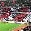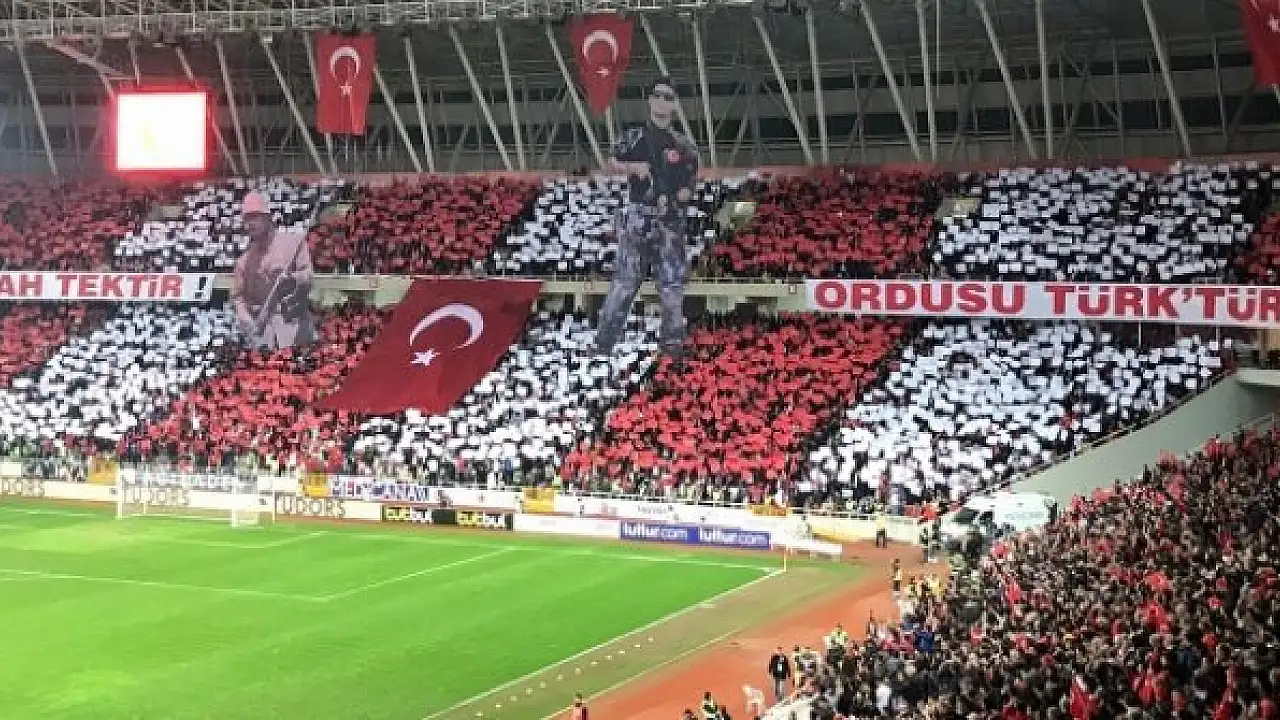 Türk bayraklarıyla tribünleri dolduran kırmızı-beyazlı taraftarlar, "Vatana Can Feda" koreografisi oluşturdu.