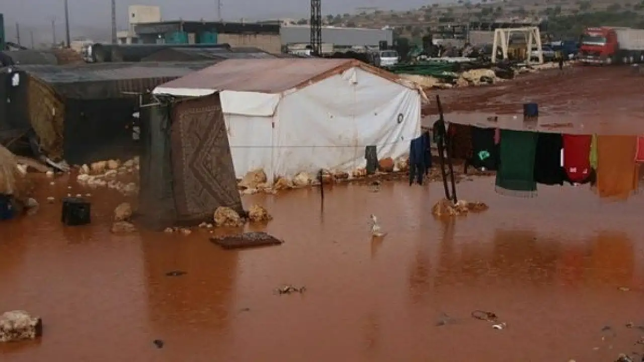 "Geçen yıl bu zamanlarda rejimin saldırıları nedeniyle bölgedeki insanlar yerinden yurdundan göç etmek zorunda bırakıldı. Bu insanlar bir umut ile Türkiye'nin sınır hattına doğru geldiler. Sınıra yakın bölgedeki Sarmada, Killi, Kefer Lusin ve Batebu gibi kamplarda göç eden insanlar sığındı. Bu kamplarda insanlar çadırlarda yaşamaya başladı. Geçen yıl verilen çadırların çoğu güneşten çürüdü. Yağmur yağdığı zaman adeta çamur deryasına dönüyor. Geçen hafta yağış nedeniyle bölgedeki kamplar çamur içinde kaldı. İnsanlar suyun içinde yaşamaya çalışıyor. İnsanlar, açlık sefaletin yanında çamur ve yağışla uğraşıyor. Bizler Türkiye'de bu kış yağmur yağsın diye dualara çıktık. Orada yaşayan insanlar ise yağmur veya karın yağmaması için dua ediyor. Yağmur oradaki insanların felaketi oluyor."