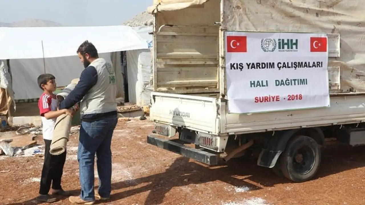 İnsan Hak ve Hürriyetleri (İHH) İnsani Yardım Vakfı tarafından, Suriye'nin İdlib kenti kırsalındaki kamplarda kalan bin aileye halı ve portatif yatak yardımı yapıldı.