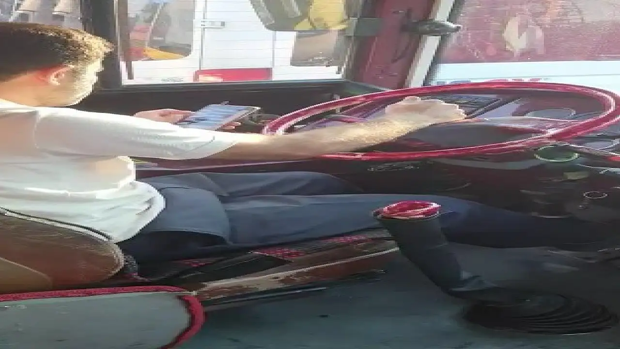 "ŞOFÖR OTOBÜSDEKİ BİR GENCE DİREKSİYONU TESLİM ETTİ"