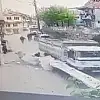 Bir başka görüntüde ise, motorcu ve araba kullanan kişilerin dikkatsizliği iki tarafın da canına mal oluyordu. Çevredeki vatandaşların yaşadığı olayın şaşkınlığı ise kameralara yansıdı.