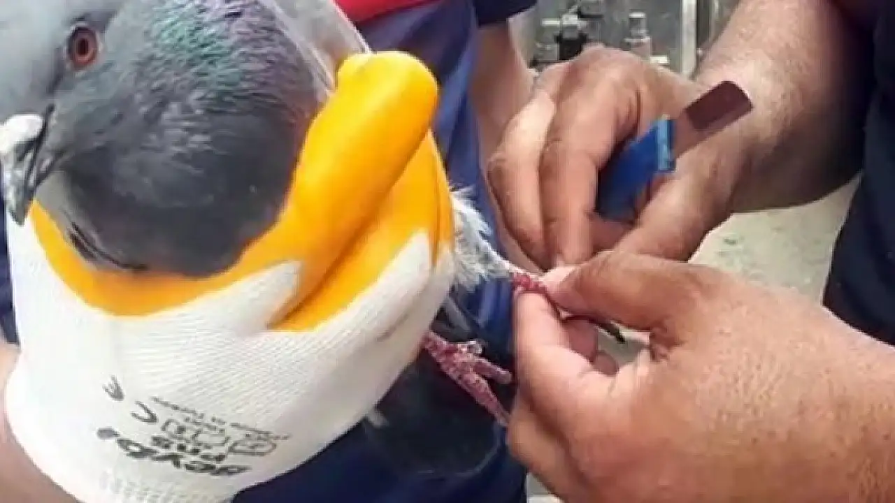 Iğdır'da ayağına ip dolanan güvercin kurtarıldı