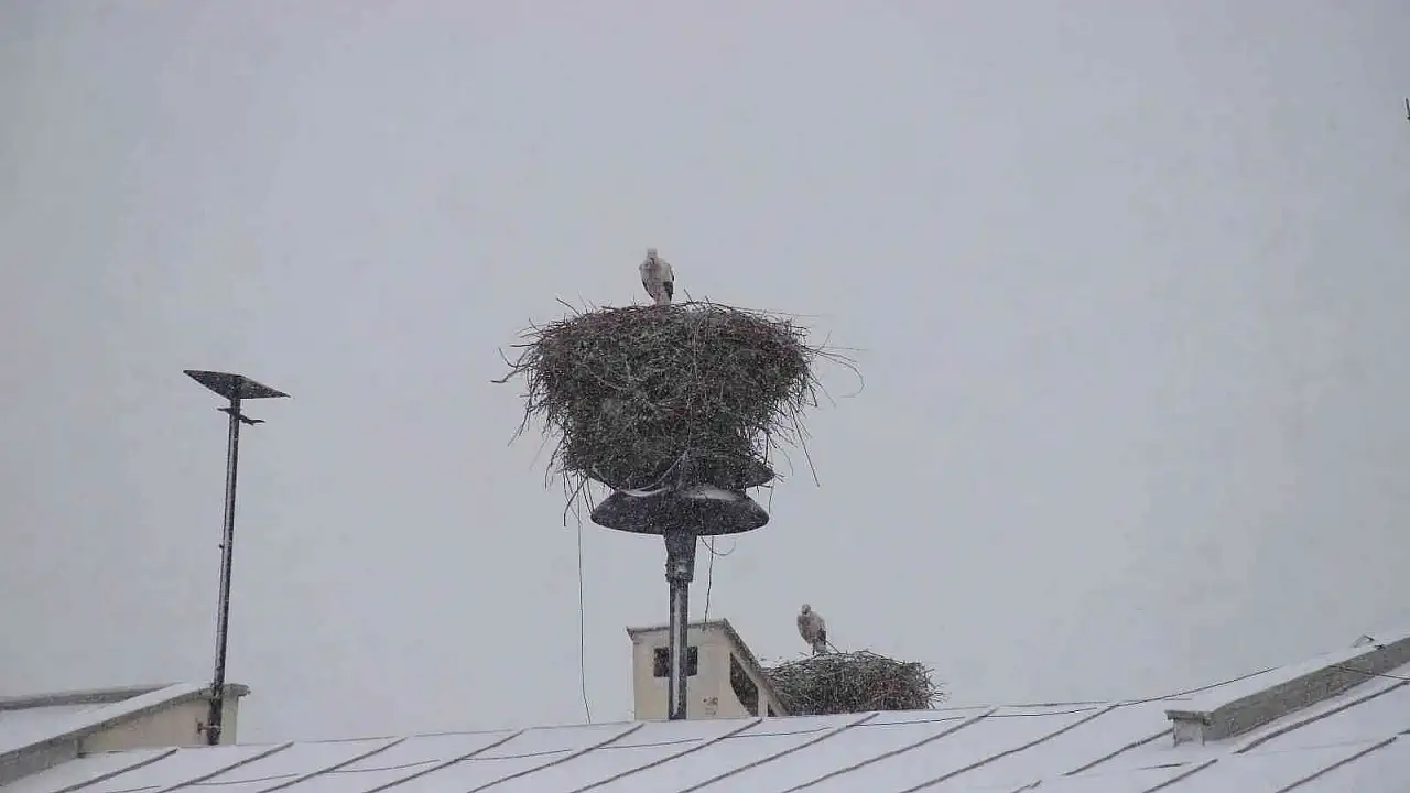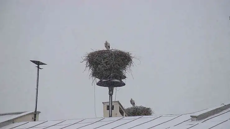 Iğdır'da havaların ısınmasıyla geri gelen ve "baharın müjdecisi" olarak adlandırılan leylekler ile Iğdır'ı 12 ay boyunca mesken tutan leylekler kar altında kaldı.