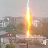 Iğdır'da etkili olan şiddetli yağmur öncesinde tek katlı bir eve düşen yıldırım, cep telefonuyla görüntülendi.