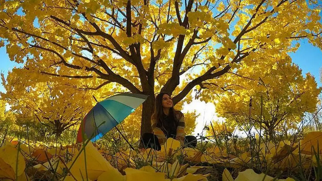 Sahip olduğu iklim dolayısıyla Doğu Anadolu'daki diğer illere göre daha sıcak olan Iğdır'da sararan kayısı ağaçlarının yaprakları doğal bir stüdyoyu aratmıyor.