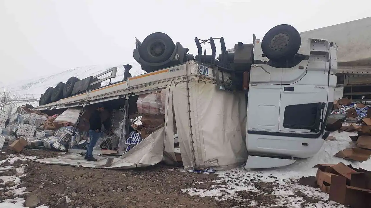 Iğdır-Doğubayazıt yolunda yoldan çıkan tır, şarampole yuvarlandı.