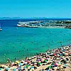 Aydın'ın Didim ilçesine gelen yerli ve yabancı turistler sahile akın etti.