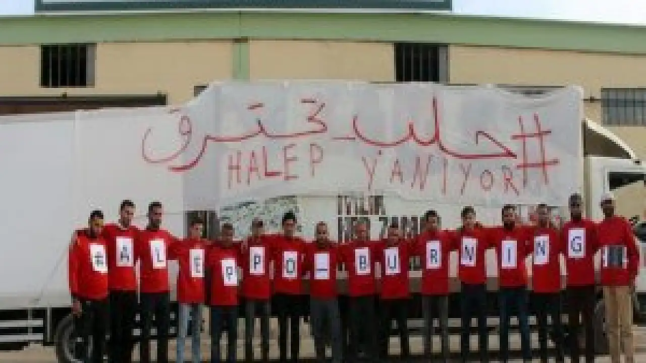 İHH Suriye çalışmaları saha sorumlusu Yusuf Bekkur, yaptığı açıklamada,Halep'te yaşanan ve son günlerde şiddetini artıran kıyım karşısında kan kırmızı tişört giydiklerini belirtti.