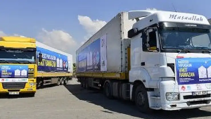 Konuşmanın ardından "Kardeşçe Paylaşım, Vakit Ramazan" pankartlarının asıldığı tırlar konvoy halinde yola çıktı.