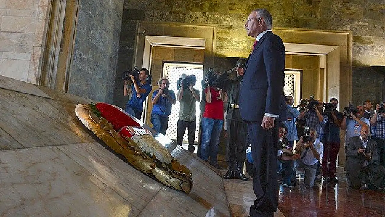 İhsanoğlu, Anıtkabir özel defterini imzaladıktan sonra İsmet İnönü'nün kabrine de kırmızı ve beyaz karanfillerden oluşan çelenk bıraktı.