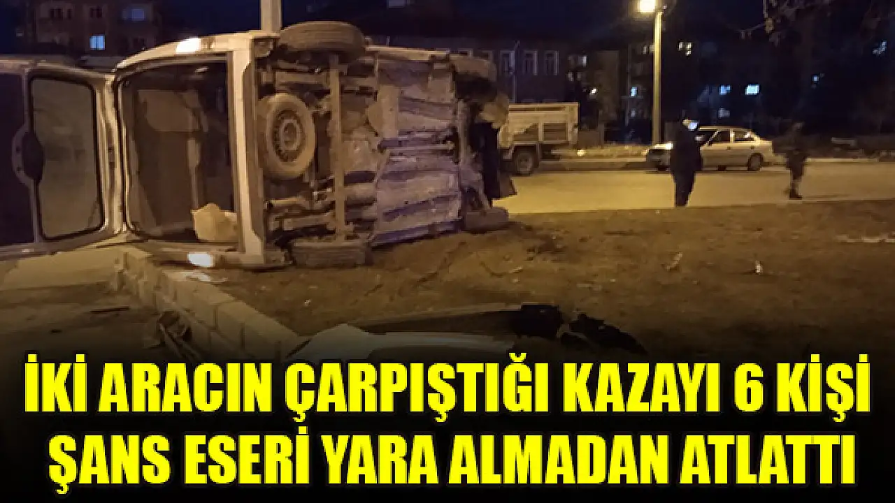 İki aracın çarpıştığı kazayı 6 kişi şans eseri yara almadan atlattı