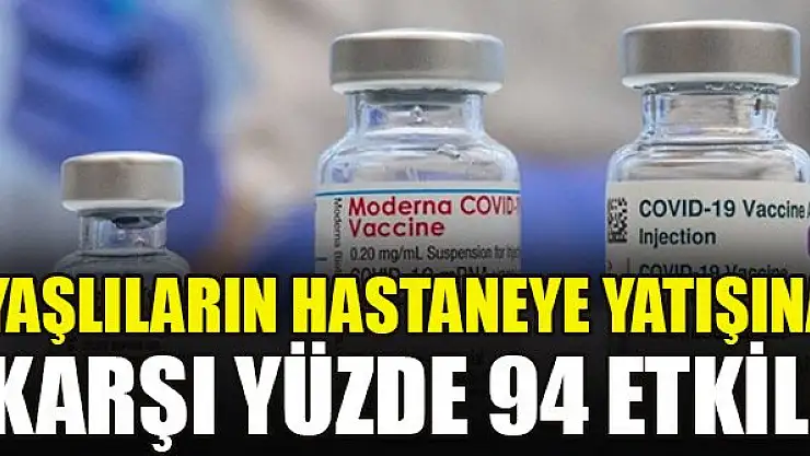 Buna göre, Pfizer-BioNTech ve Moderna'ya ait Covid-19 aşılarının 65 yaş üzeri yaşlılarda hastaneye yatışa karşı yüzde 94'lük bir oranda yüksek koruma sağladığı ortaya çıktı.