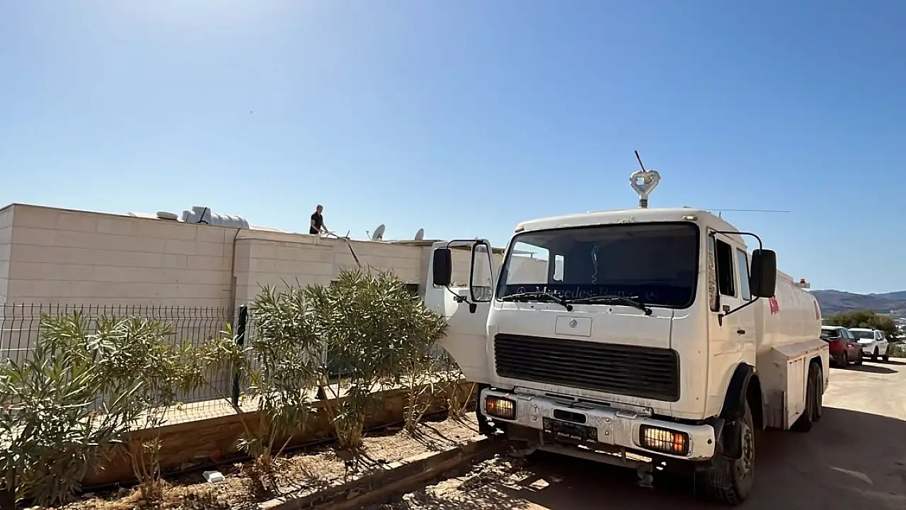 MUĞLA'nın dünyaca ünlü turizm ilçesi Bodrum'da iki barajın kuruması nedeniyle bazı mahallelere 10 gündür su verilemiyor. Mağdur olduklarını söyleyen vatandaşlar yetkililerden çözüm beklerken, Çırkan Mahalle Muhtarı Coşkun Ünlü kendisine ait tankerle, kuyulardan doldurduğu suyu vatandaşlara dağıtmaya devam ediyor.