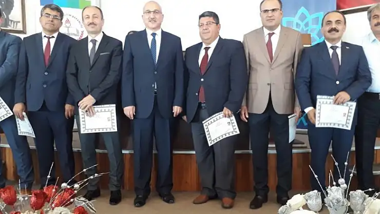 Konya Valisi Cüneyit Orhan Toprak tarafından ödüllendirilen İlçe Milli Eğitim Müdürlerinin ödül belgeleri İl Milli Eğitim Müdürü Seyit Ali Büyük tarafından takdim edildi.
