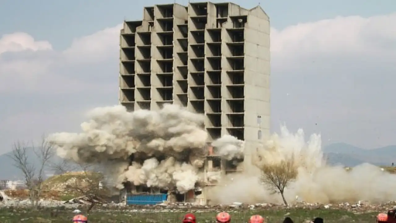 Bursa'da 13 katlı bir bina yaklaşık 300 kilo dinamit kullanılarak patlatıldı. İki kez patlatılan bina yıkılmadı. Yıkım işlemi ileri bir tarihe ertelendi.