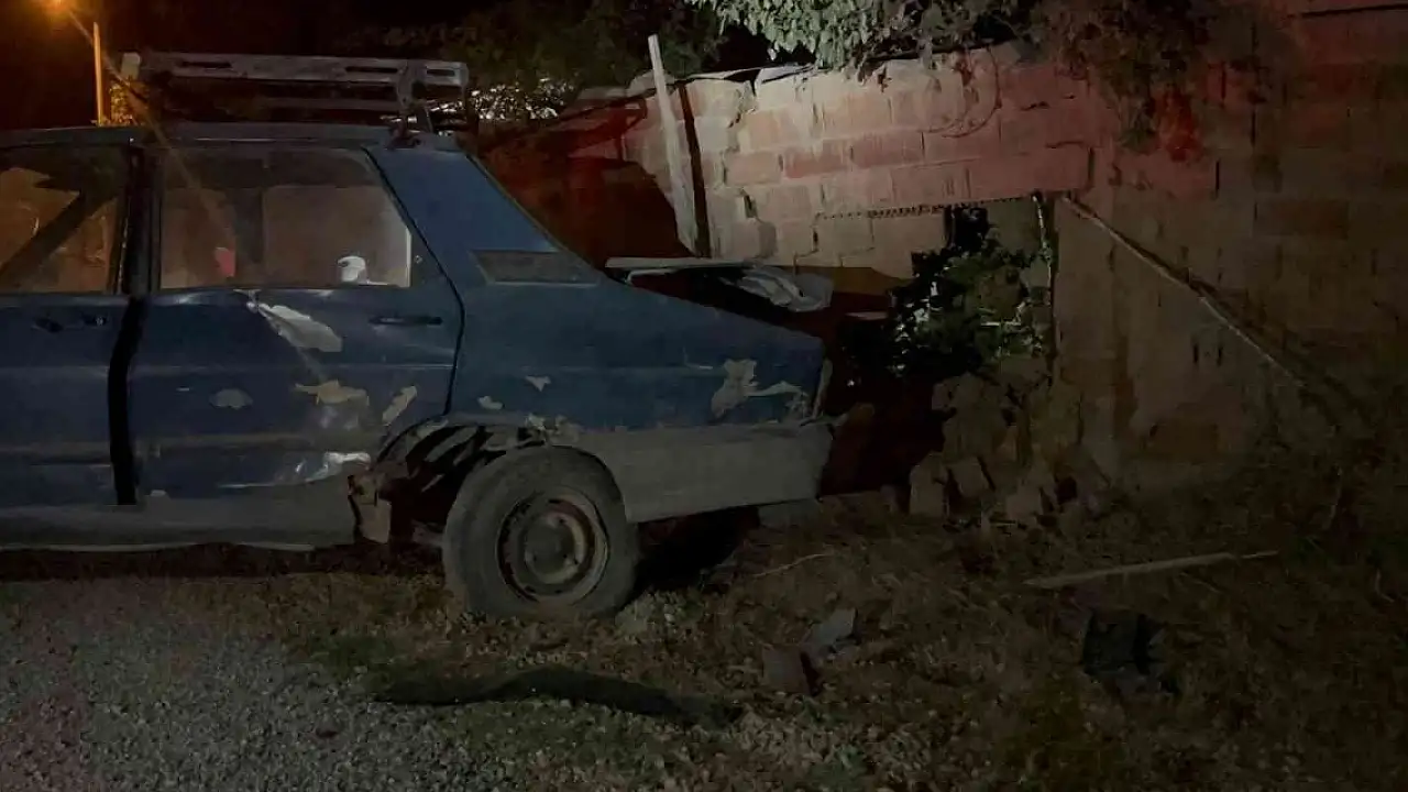 Afyonkarahisar'da hafif ticari aracın çarptığı otomobil kontrolden çıkarak evin bahçe duvarına çarparak durabildi.
