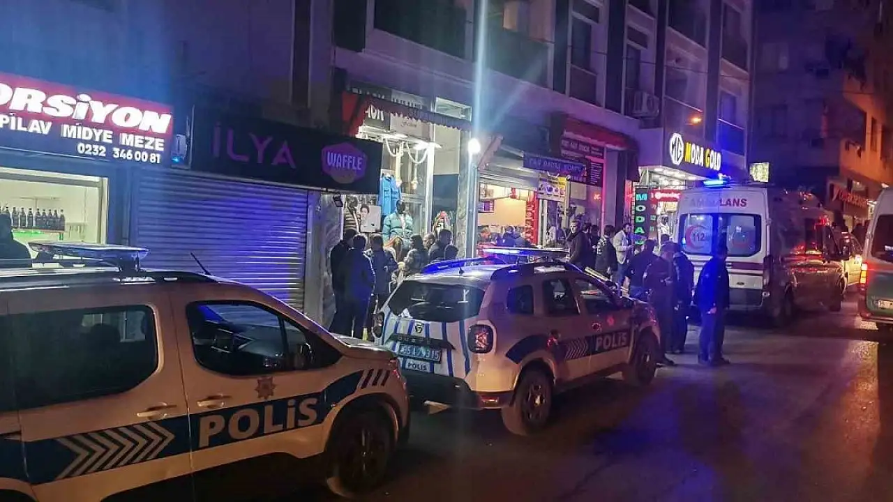 Olay, akşam saatlerinde Bayraklı Mahallesi 1639 Sokak'ta meydana geldi. İddiaya göre, eski kız arkadaşı Şerife C.'nin (41), işlettiği dönerci dükkanına gelen Turan Kayaş (43), burada eski sevgilisiyle tartışmaya başladı. Bu esnada kavga seslerini duyan Mehmet U. (43), olayı yatıştırmak için araya girince, Kayaş tarafından silahla vücudunun iki farklı yerinden vuruldu. Mehmet U., kanlar içerisinde yere yığılırken, Kayaş, suç aleti silahla intihar etti. Silah seslerini duyan çevredeki vatandaşların ihbarı üzerine adrese çok sayıda polis ve 112 Acil Sağlık ekipleri sevk edildi.