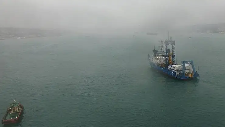 Bu kapsamda, Kabataş açıklarına getirilen sondaj gemisi ile başlayan çalışmaları, AA ekibi havadan görüntüledi.