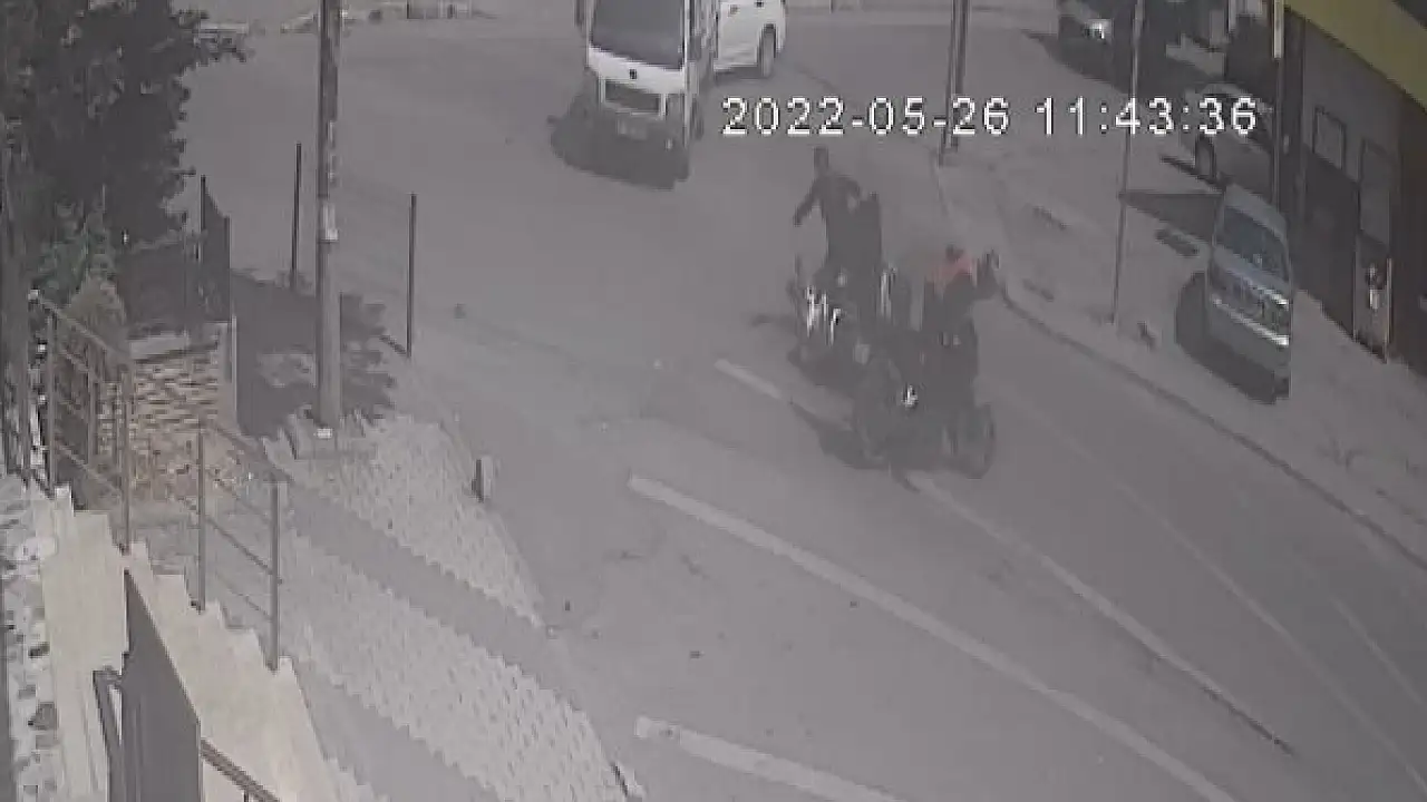 Kaza anı çevredeki bir iş yerinin güvenlik kamerasına yansıdı. Görüntülerde, yoldaki iki kuryenin çarpıştığı ve motosikletleriyle savruldukları görülüyor. Çevredekilerin koşarak yaralılara yardım ettiği kameraya yansıyor.