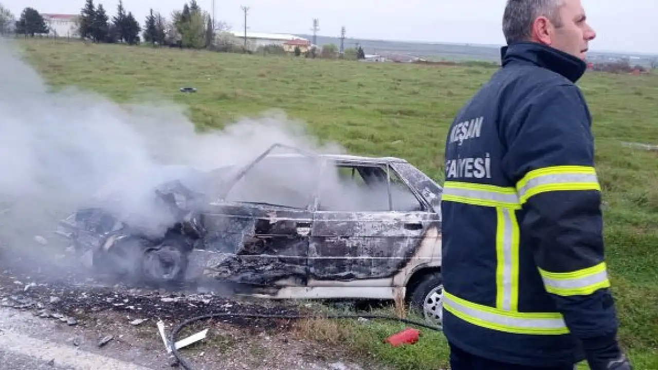 EDİRNE'nin Keşan ilçesinde iki otomobilin çarpıştığı kazada iki sürücüden Nuran Sansar (59) öldü, C.E. (40) ise yaralandı.