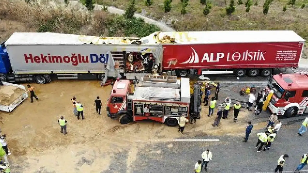 Kuzey Marmara Otoyolu'nda kaza yapan 2 tır ortalığı savaş alanına çevirdi.
