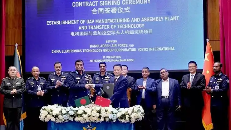 Bangladeş Hava Kuvvetleri, Çin Elektronik Teknoloji Grubu Şirketi'nin ihracat kolu olan CETC International ile dün yerli askeri insansız hava aracı üretim ve montaj tesisi kurmak üzere bir anlaşma imzaladı.