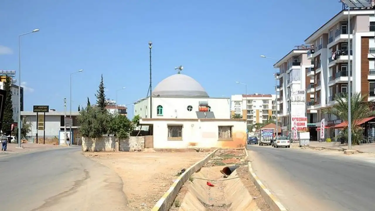Antalya'nın Kepez ilçesinde geçmişte gecekondu bölgesi olan mahallede imar planlamasının ardından iki yol arasında kalan cami görenleri şaşırtıyor.