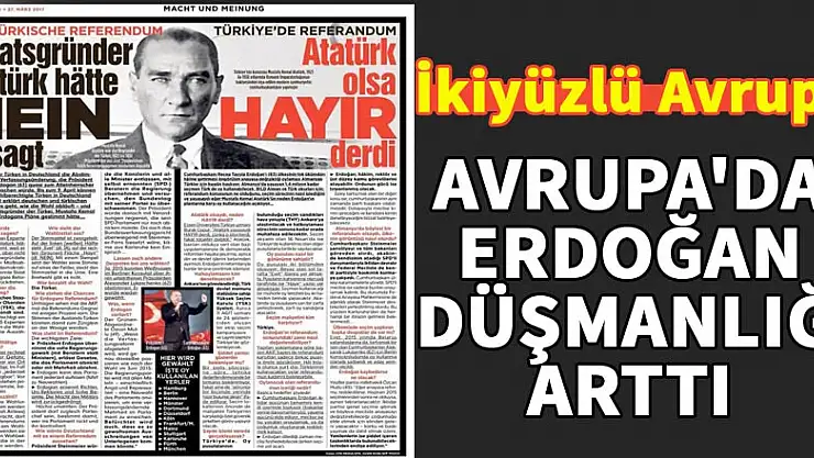 PKK terörsitlerine sokakları ve konferans salonlarını açan ikiyüzlü Avrupa, Cumhurbaşkanı Erdoğan'ı ise ölümle tehdit edecek kadar ileri gitti. Demokrasi naraları atan AB ise yaşanan bütün bu rezaletlere kayıtsız kaldı, hatta açıklamalarıyla Hollanda ve Almanya'ya destek çıktı. Avrupalı basın ise hemen hemen her gün Türkçe yayınlar yaparak ''hayır'' propagandası yaptı. Hatta Alman Bild gazetesi haddini aşarak Atatürk'ü kullanıp ''Atatürk olsaydı hayır derdi'' algısı yaptı.