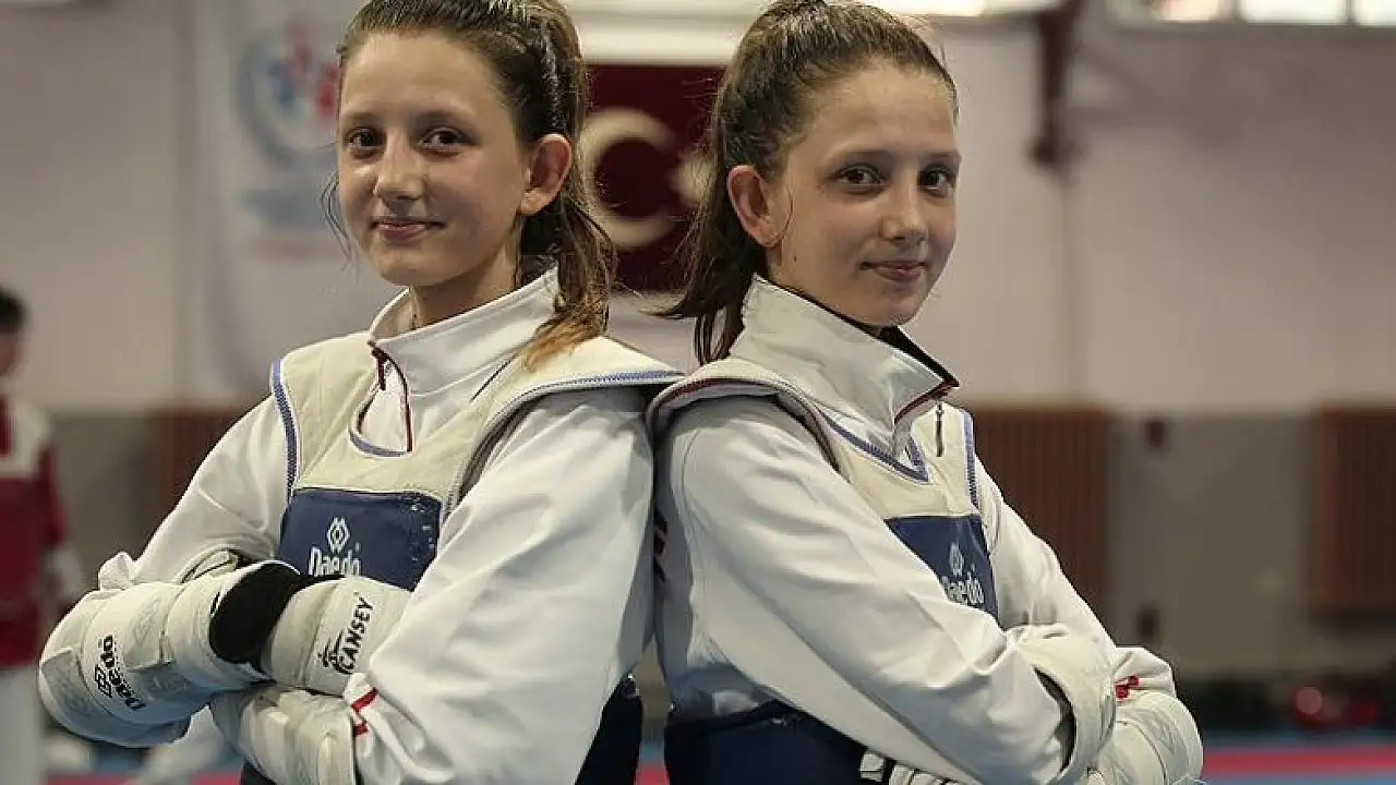Kırklareli'nde arkadaşlarından özenerek tekvandoya başlayan 14 yaşındaki ikiz kardeşler Şefika ve Şevval Çakal, Avrupa şampiyonluğu için çalışmalarını sürdürüyor.