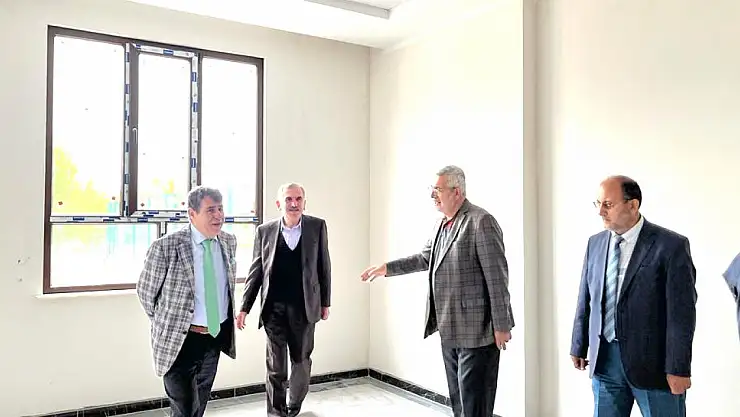 Selçuklu Kaymakamı Eflatun Can Tortop ve İlçe Müftüsü Bekir Derin, 2022 yılında temeli atılan İkr'ar Yatılı Hafızlık Kız Kur'an Kursu inşaatını inceledi.