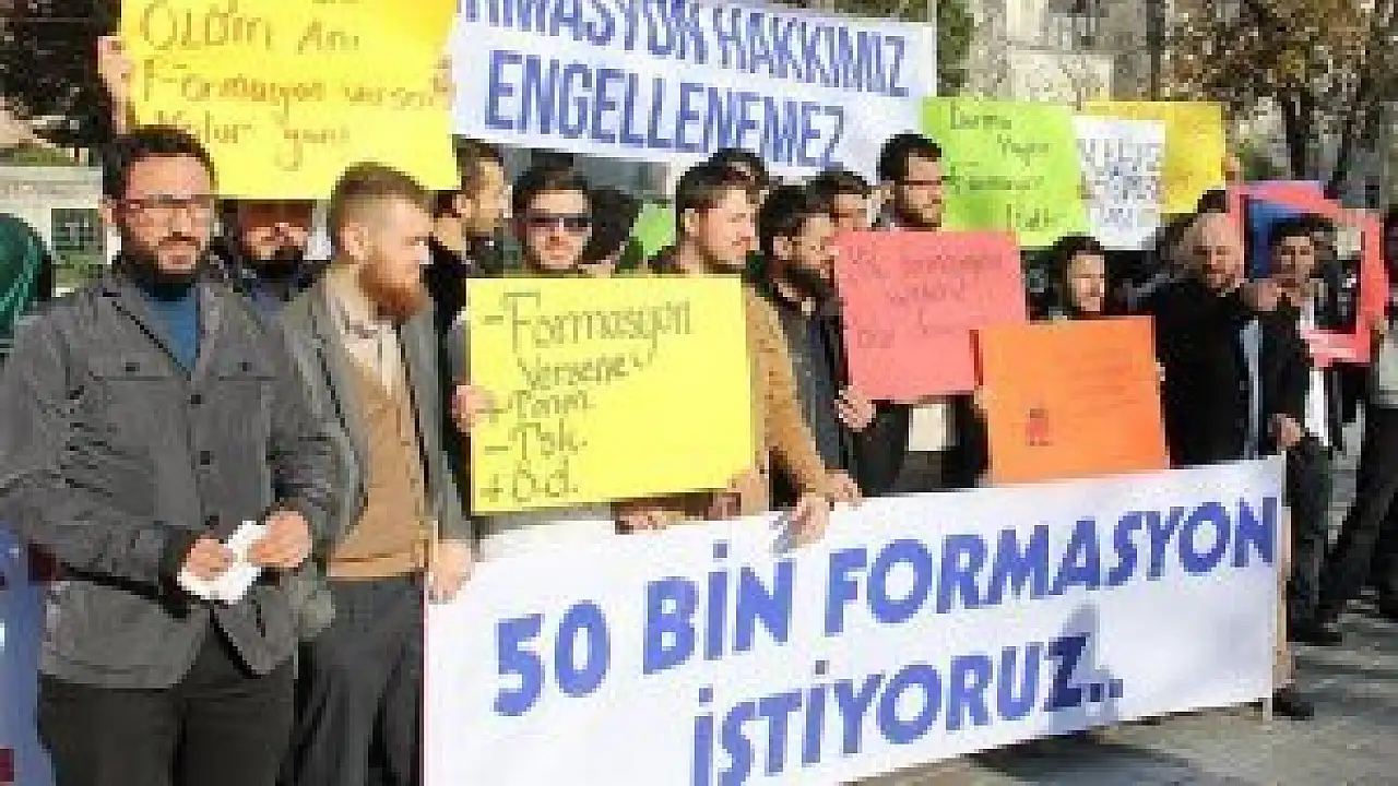 Ayasofya Meydanı’nda toplanan öğrenciler, "formasyon haktır, durma haykır" şeklinde slogan atarken, ellerinde, "50 bin formasyon istiyoruz", "formasyonsuz kaldık bitanesi", "formasyon hakkımızı istiyoruz" yazılı pankart ve dövizler taşıdı.