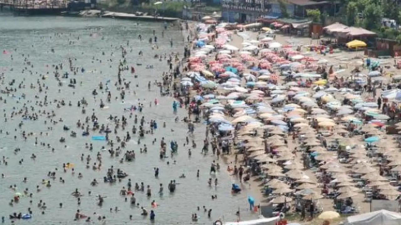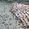 Büyük Liman mevkisinde bulunan plajda ise şemsiye açacak yer bulunamadı. Denize giren vatandaşlar 35 derecelik hava sıcaklığında top oynadı.