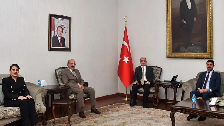 Bozkır Kaymakamı Fatmagül Dalmış ve Tuzlukçu Kaymakamı İsa Bertan Vali Vahdettin Özkan'ı makamında ziyaret etti.