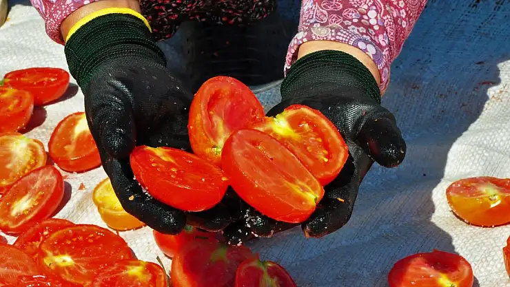 Türkiye'de sanayi tipi domates üretiminde 2'nci sırada yer alan, kurutulmuş domatesin de önemli merkezlerinden Manisa'nın Saruhanlı ve Turgutlu ilçelerinde hasat edilen ürünler, kurutulmak için tarlalara serilmeye başlandı. Tarlada işçilerin topladığı domatesler, makineyle güneşe seriliyor. Tuzlama işleminin ardından 1 hafta boyunca kurumaya bırakılan domatesler, daha sonra tesislere getirilerek işleniyor. İhracatçı firmalara kilogramı 35 ile 40 TL arasında verilen kurutulmuş domatesler, ABD başta olmak üzere İngiltere, İtalya, Almanya ve Rusya'ya gönderiliyor. Bu yıl kurutulmuş domateste 15 bin tonluk ihracat hedefleniyor.