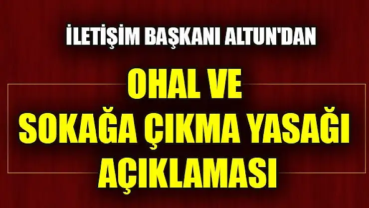 İletişim Başkanı Altun: 'OHAL ilan edileceği, sokağa çıkma yasağı uygulanacağı, seyahat kısıtlaması getirileceği söylentileri gerçeği yansıtmıyor.'